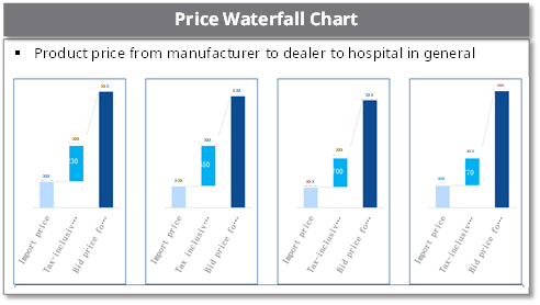 – Product price from manufacturer to dealer to hospital in general