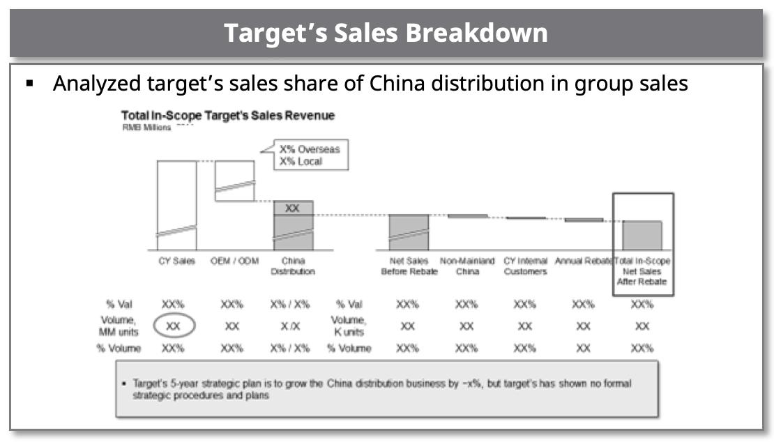 - Identify the target’s and industry commercial practice through in-depth interviews with ~15 internal management executives as well as ~20 key external stakeholders