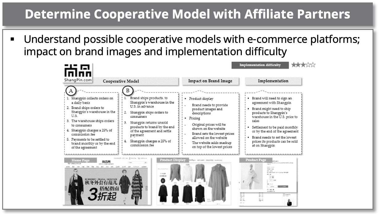 The client, a premium American brand has being offering international shipping to China on its official website for several years. In addition to official sales, a significant amount of sales come from affiliated partners. The client is interested in expanding its business in both channels and capture a greater share of its opportunity in China.